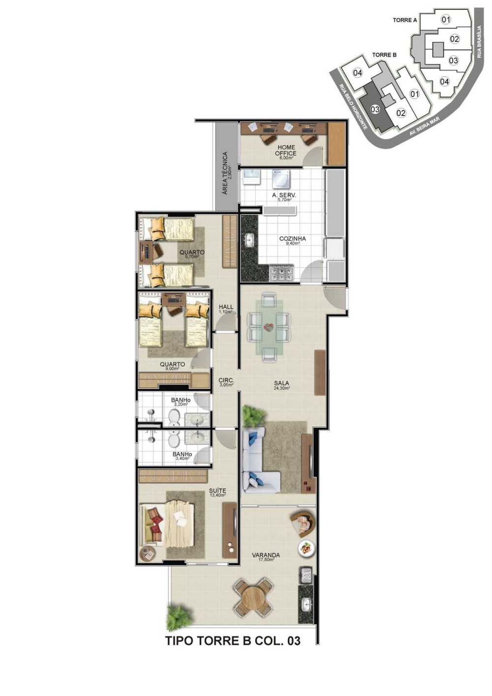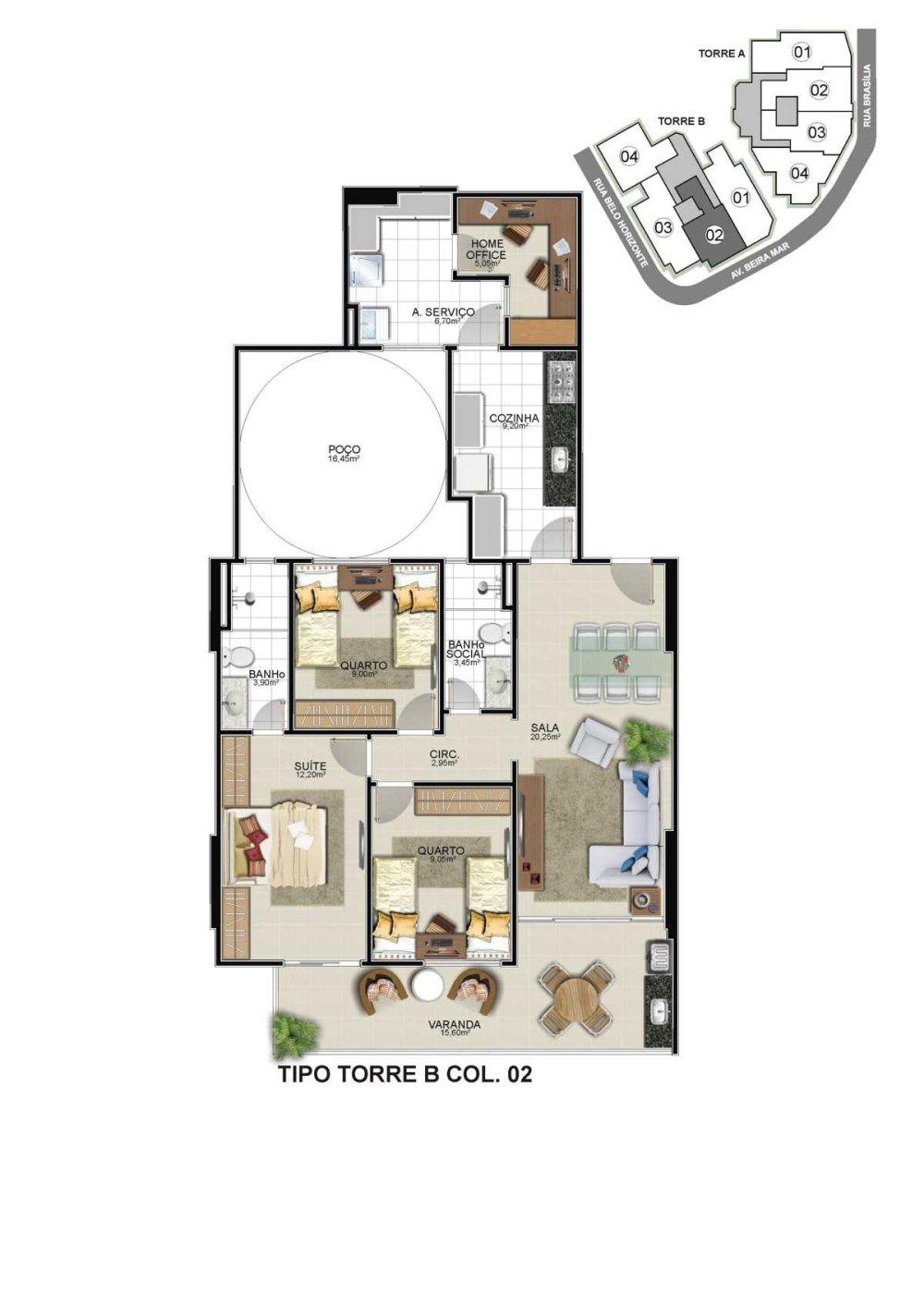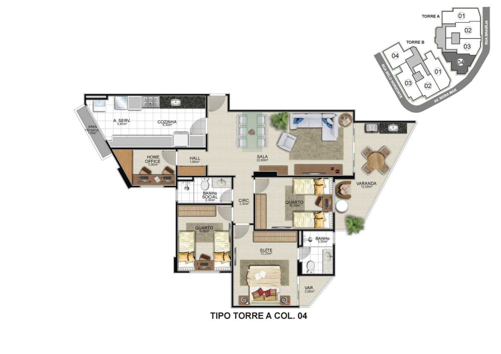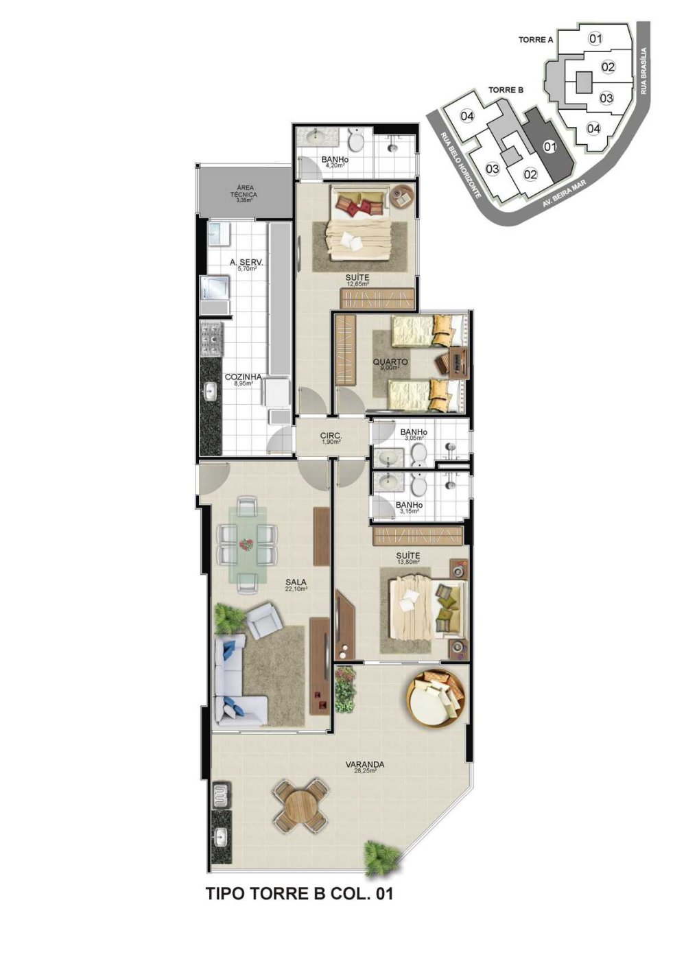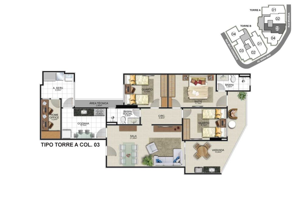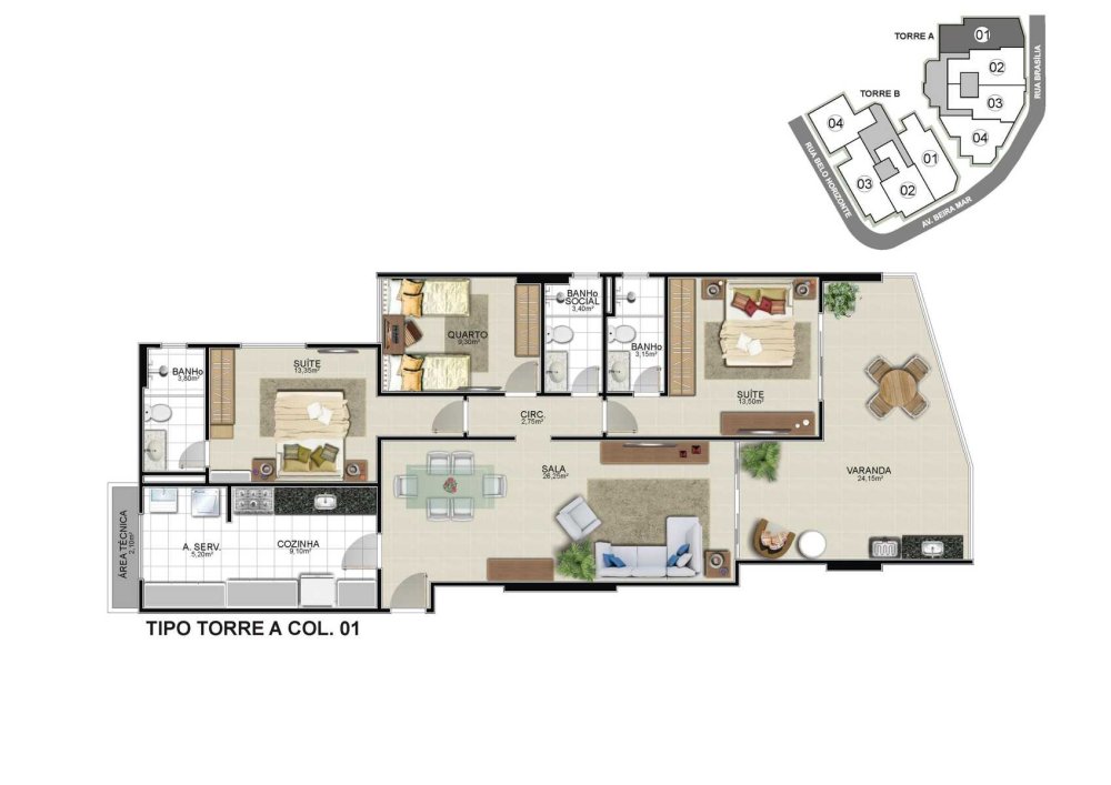 - Área Total: 123,35 m²